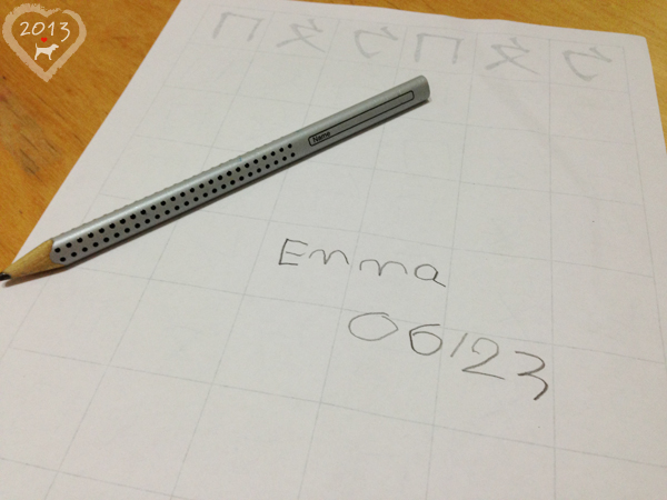 小Emma開始學寫字了